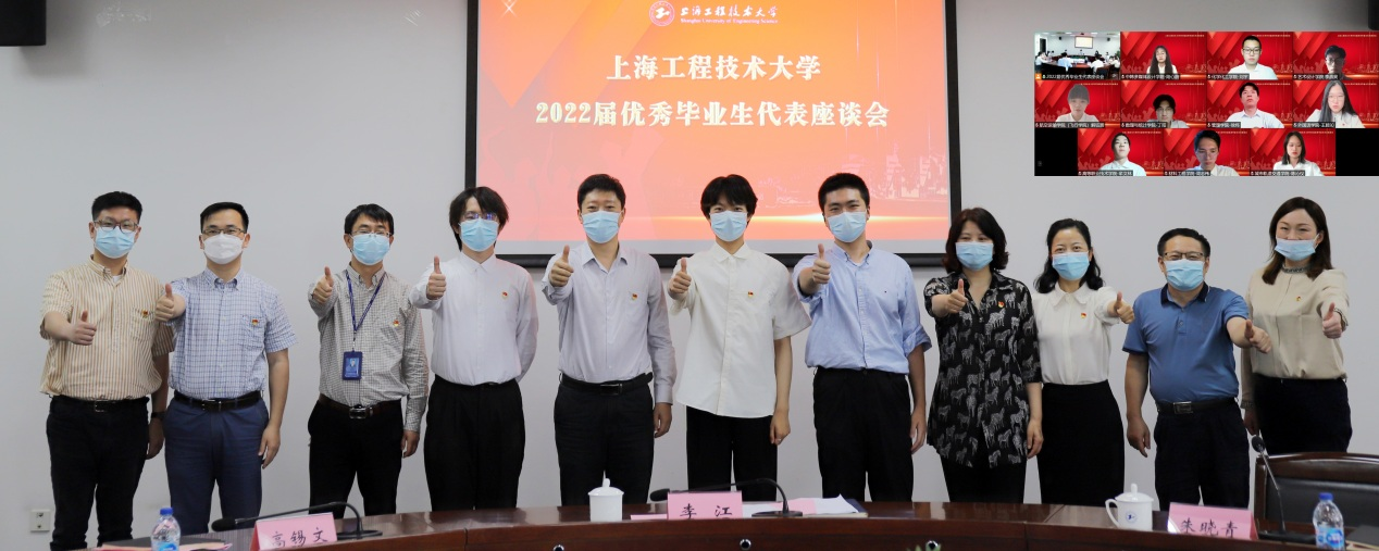 6月10日下午,2022届优秀毕业生代表座谈会在行政楼306会议室和腾讯会议同步举行。校党委书记李江,校党委副书记、副校长朱晓青出席会议,党委办公室主任高锡文,学生工作部(处)长、研究生工作部部长朱蓓,教务处处长陈浩,研究生处处长张华,后勤实业发展中心主任王佳杰,校团委书记董旖旎,各学院党委副书记、2022届上海市优秀毕业生代表等参加会议。会议由校党委副书记、副校长朱晓青主持。