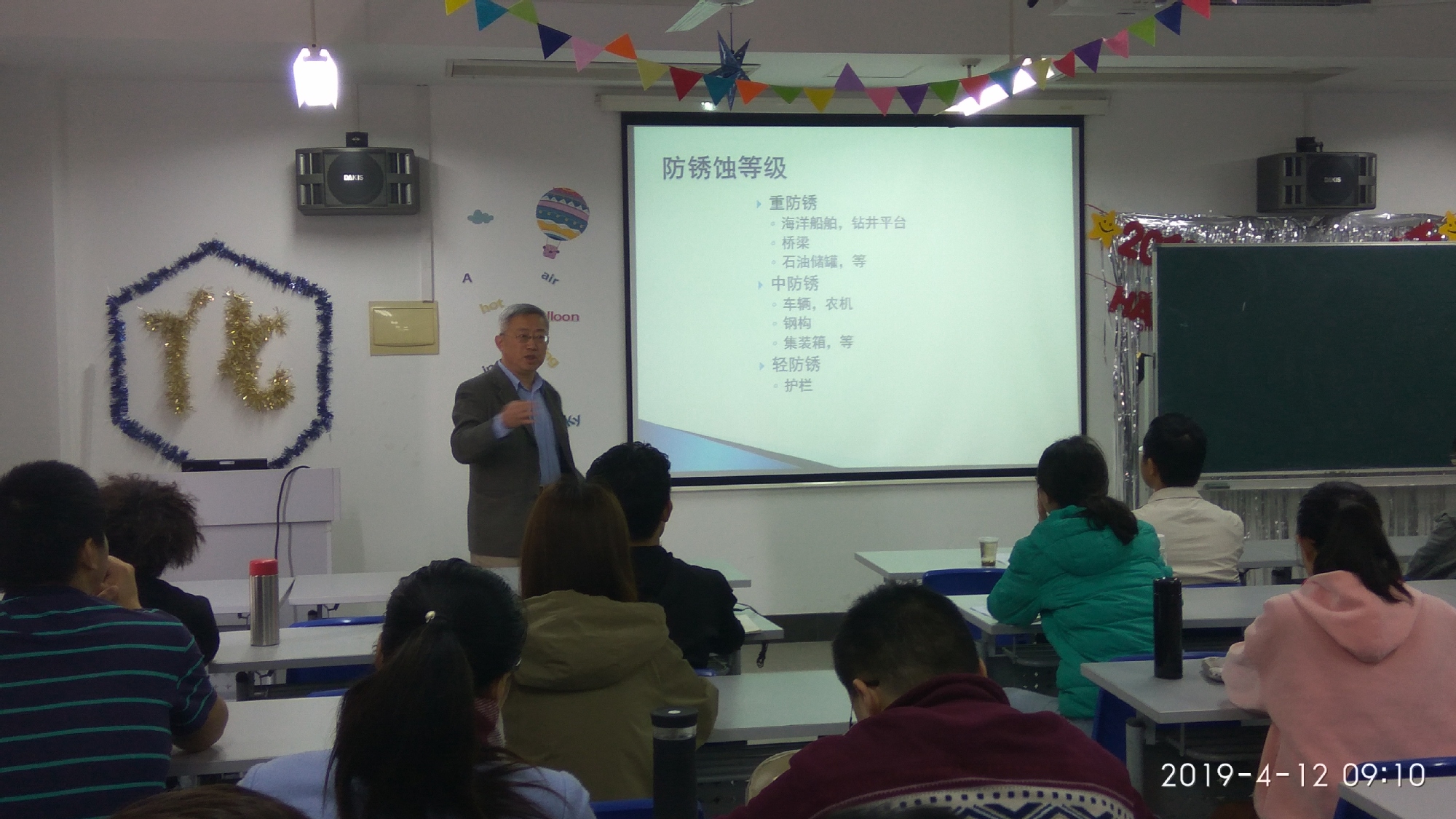 马总从防锈蚀机理出发,介绍了防锈剂概况,防锈机理,防锈产品等内容,重点讲解了美国和欧洲不同的防腐测试和评价方法。马总引用了很多实战案例分析,理论结合实际,把他从事涂料尤其是防锈剂研究工作的积累宝贵经验无私地分享给学生,积极与学生互动,解答学生的问题,还给学生做了职业规划的指导。让学生了解防锈剂在涂料中的研究进展,拓宽了视野,激发了对涂料学习的兴趣,提升了应用能力。