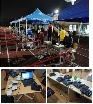 在接到要开展检测签到的任务后,工程大信息办全员上阵,以综合信息化服务助力疫情防控。卡管中心立刻调试所有机器,并在现有刷卡签到机不足的情况下,搜集笔记本电脑安装软件,短时间内部署了十余台可以刷卡签到的“新设备”,完成并发压力测试。同时,信息中心的老师紧急对接上海市大数据中心,连夜进行批量数据获取的接口开发,马不停蹄地整理所有师生的数据,完备无误地导入刷卡签到的“设备”中。“双技合璧”为学校核酸检测统计打下了成功的基础,更凸显技术实力是战疫“硬核”。