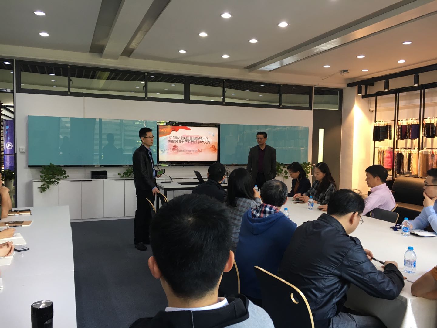 讲座结束后,陈晓钢博士与服装学院胡越副院长、辛斌杰教授等负责人就合作办学与科研合作等国际项目展开了深入地交流,就办学特色、课程设置情况、入学要求、雅思成绩要求等方面进行了友好探讨。