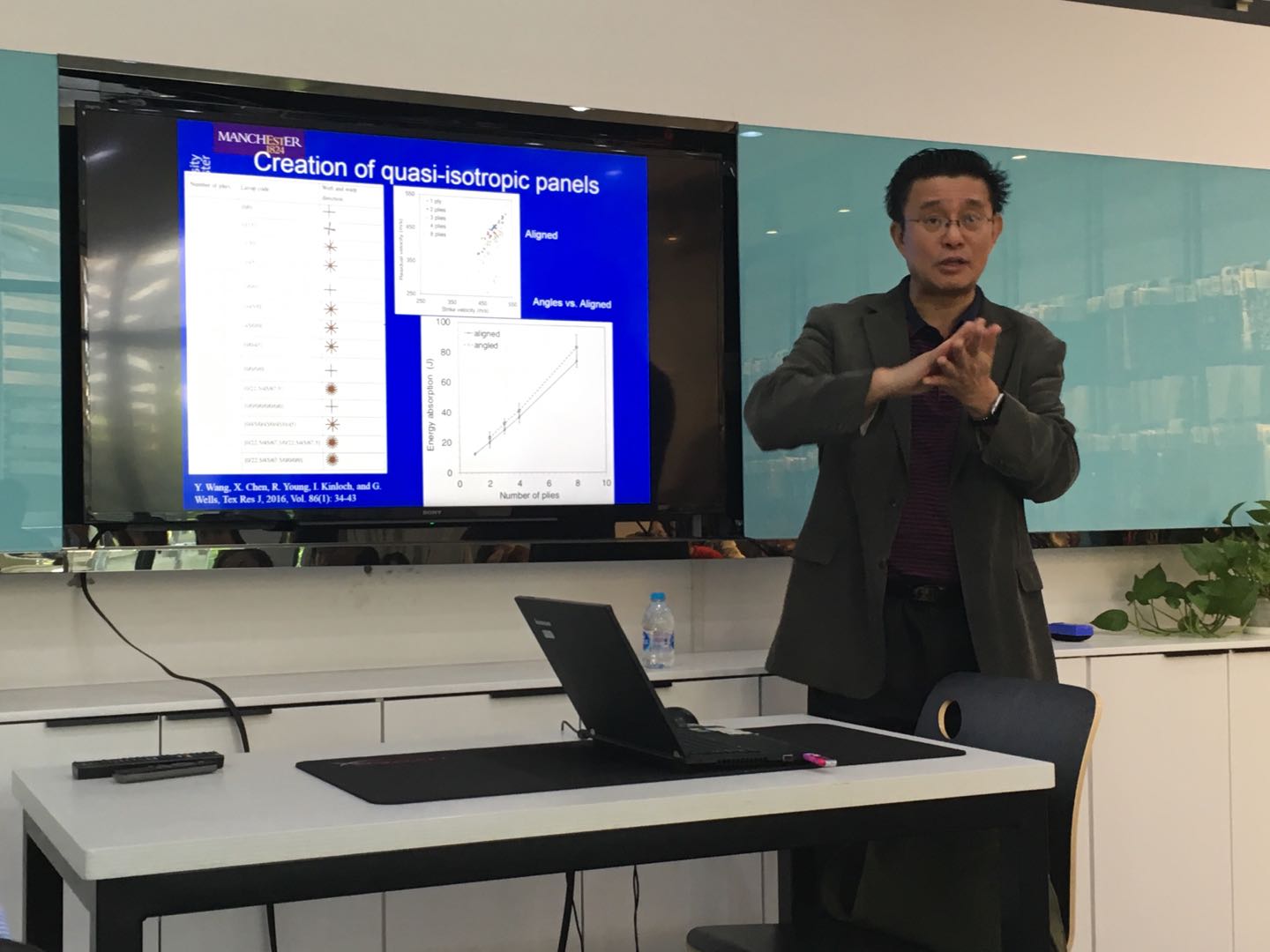 陈晓钢博士此次为我校师生作了题为“个体高速冲击防护材料的研究进展”的学术报告。讲座详细介绍国际前沿特别是曼彻斯特大学材料学院在防弹材料研发方面所做的工作及取得的研究成果。研究内容涉及防弹纤维表面改性、织物组织结构设计、叠层混杂结构设计、剪切增稠及石墨烯材料等在防弹材料上的一系列体系化应用。讲座内容丰富生动,专业而易懂,吸引了广大师生甚至外校师生的来访及聆听。