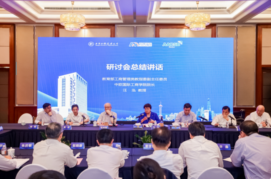 谋发展之路,悟育人之道,MBA 项目建设研讨会在启动会的下半场进行,与会人员围绕“新时代MBA人才培养机遇与挑战”“MBA培养模式与特色发展”“MBA品牌塑造”等议题展开经验分享与热烈讨论,为工程大MBA打开办学思路、落实培养理念提供了专业建议。教育部工商管理类教指委副主任、中欧国际工商学院院长、上海工程技术大学MBA/MPA专家委员会主任汪泓教授总结指出,MBA/MPA项目应把握机遇,质量与发展并重,坚持以学生能力培养为中心,加强师资队伍建设,构建灵活多样的教学方法,以满足社会、学生需求推进内涵建设。上海工程技术大学管理学院院长、MBA中心教育中心主任胡斌介绍了管理学院的基本情况,MBA项目的定位、方向、特色和优势等。