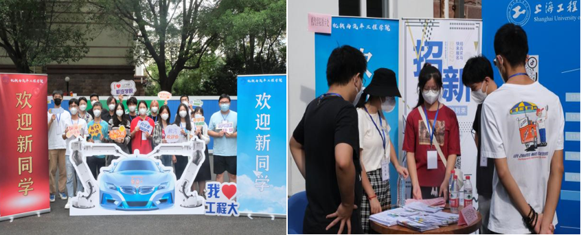 学院精心设计了一系列迎新活动,设计制作了特色文创产品,环保帆布袋、钥匙扣、明信片等,寓意新生将在机汽学院书写新的篇章;迎新现场征集新生对党的二十大寄语,将新生照片和寄语做成展板照片墙,与党的二十大红色展板相映,积极倡导党史学习,共同喜迎党的二十大胜利召开;展示学院特色之“智造+”号未来汽车展板,让新生在汽车展板前合影留念,寓意新生乘坐“智造+”号汽车,驶向美好的未来;志愿者带领新生参观大学生创新基地,体验学院师生竞赛风采。