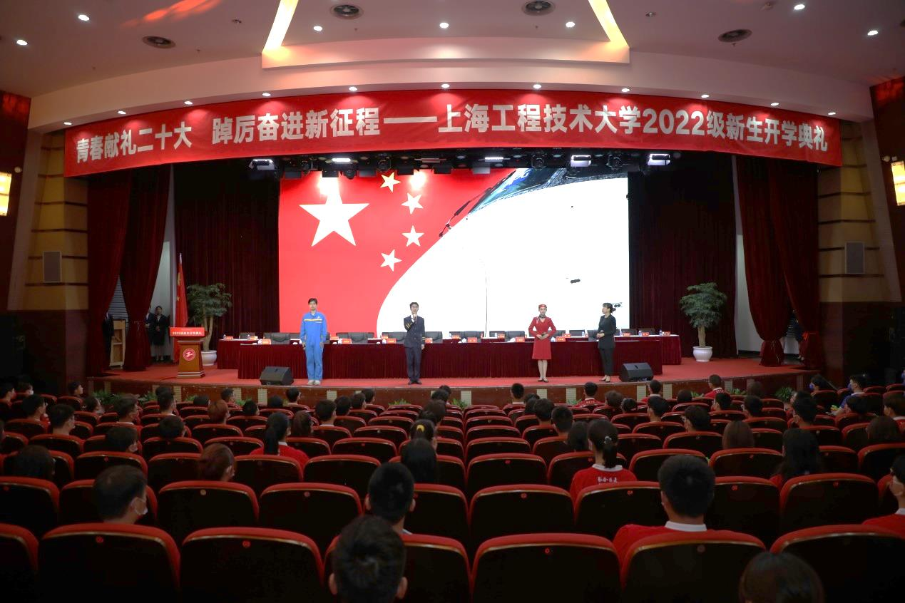 为迎接党的二十大,上海工程技术大学以信仰为主线,在开学典礼中融入红色元素,引导学生以实际行动践行“请党放心,强国有我的”铮铮誓言。活动现场,学校党委书记李江精心挑选《红色的起点》和《信仰的力量》两本书,赠予“青马”工程接续培养对象,鼓励学子们以勇毅前行的担当,肩负起中华民族伟大复兴的历史使命;校长俞涛以《未来已来,笃行不怠》为题,希望同学们将“个人小我”融入“家国大我”当中,不负韶华,不负时代,不负人民。