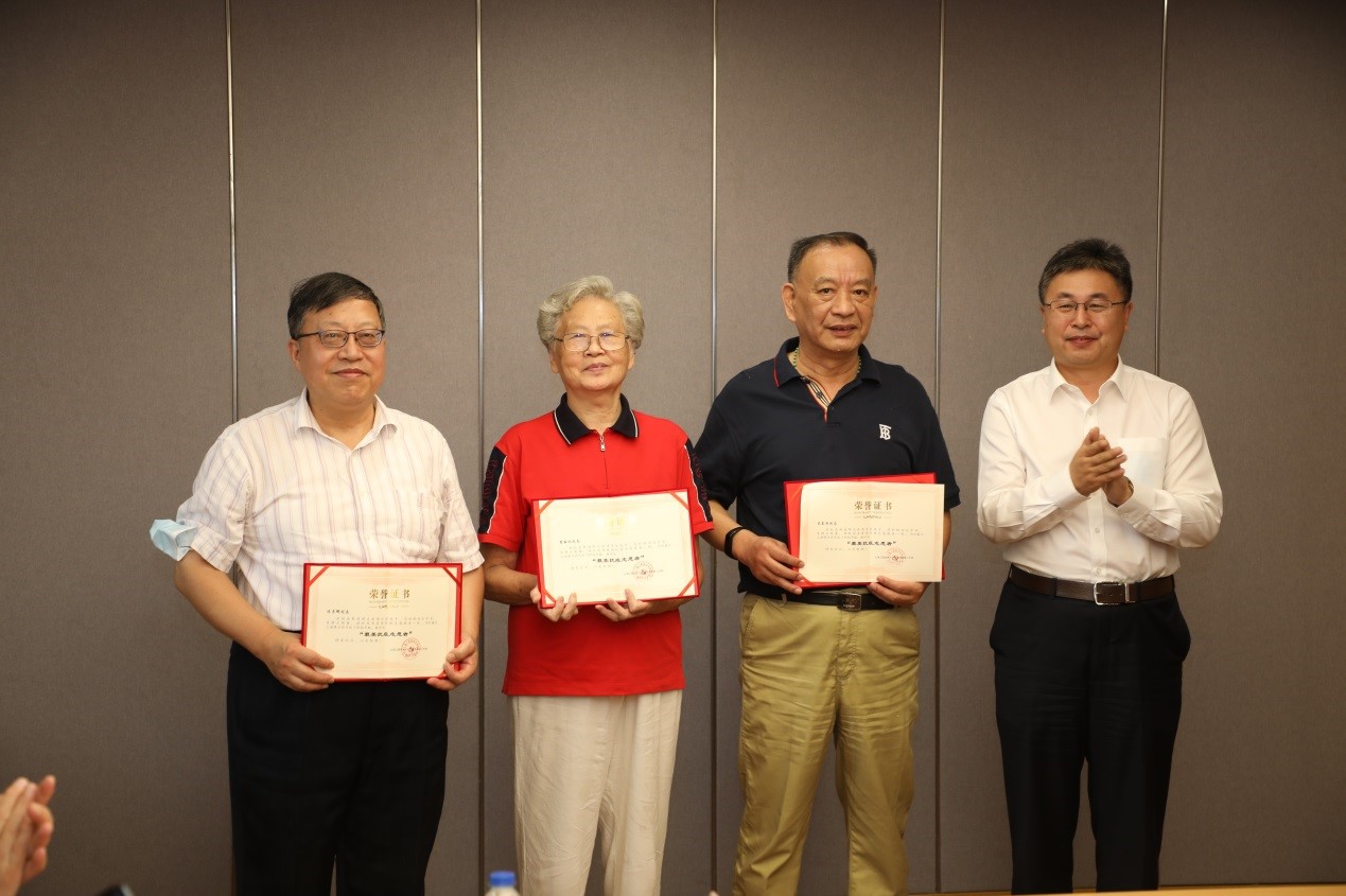 王岩松副校长向曹丽纳、史泰冈、陈月辉三位老同志颁发了校离退休干部“最美抗疫志愿者”荣誉证书。
