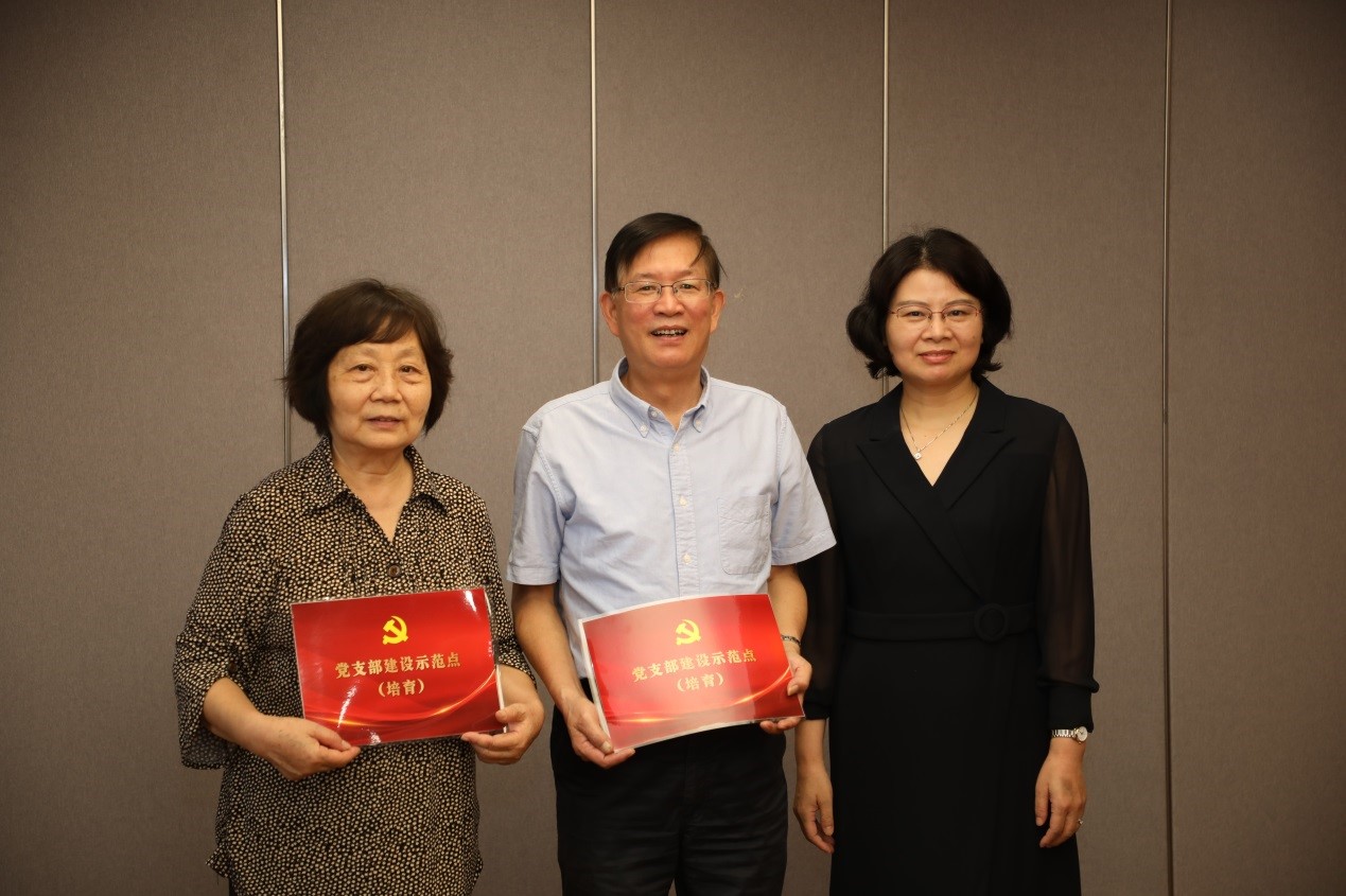 朱晓青副书记向退休局级干部直属党支部书记田信灿同志及退休教工第六党支部书记庄勉同志颁发了校“党支部建设示范点”培育创建重点项目立项证书。