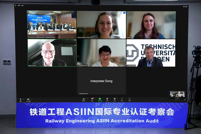 10月28日,城市轨道交通学院铁道工程专业顺利完成德国ASIIN国际专业认证在线考察。ASIIN认证考察组专家成员,副校长夏春明,教务处、质量办、校办、国交处、人事处、财务处、学生处等相关职能部门负责人,城市轨道交通学院负责人及相关专业教师出席认证考察反馈会。会议由ASIIN项目经理Yanna Sumkötter主持。