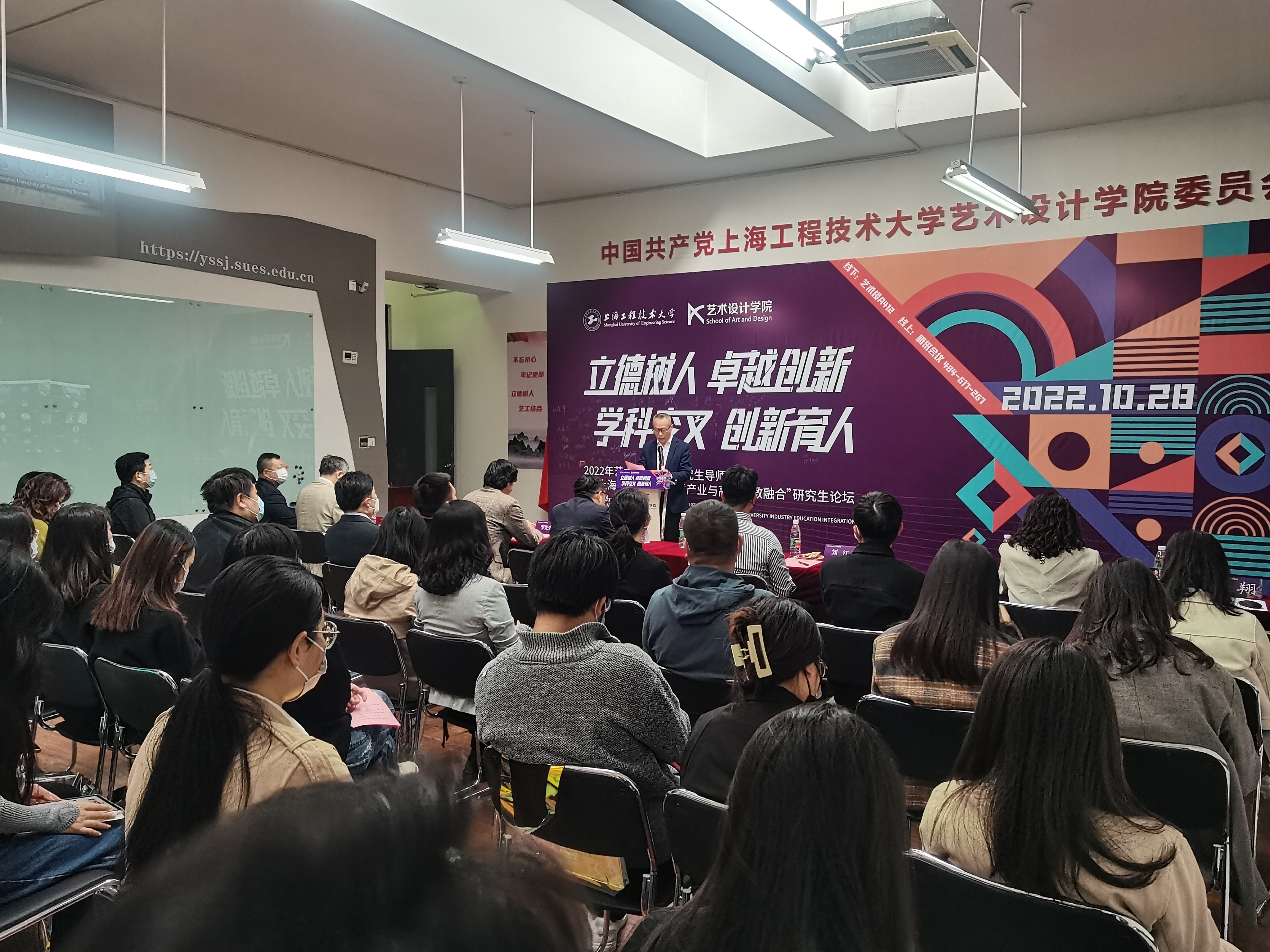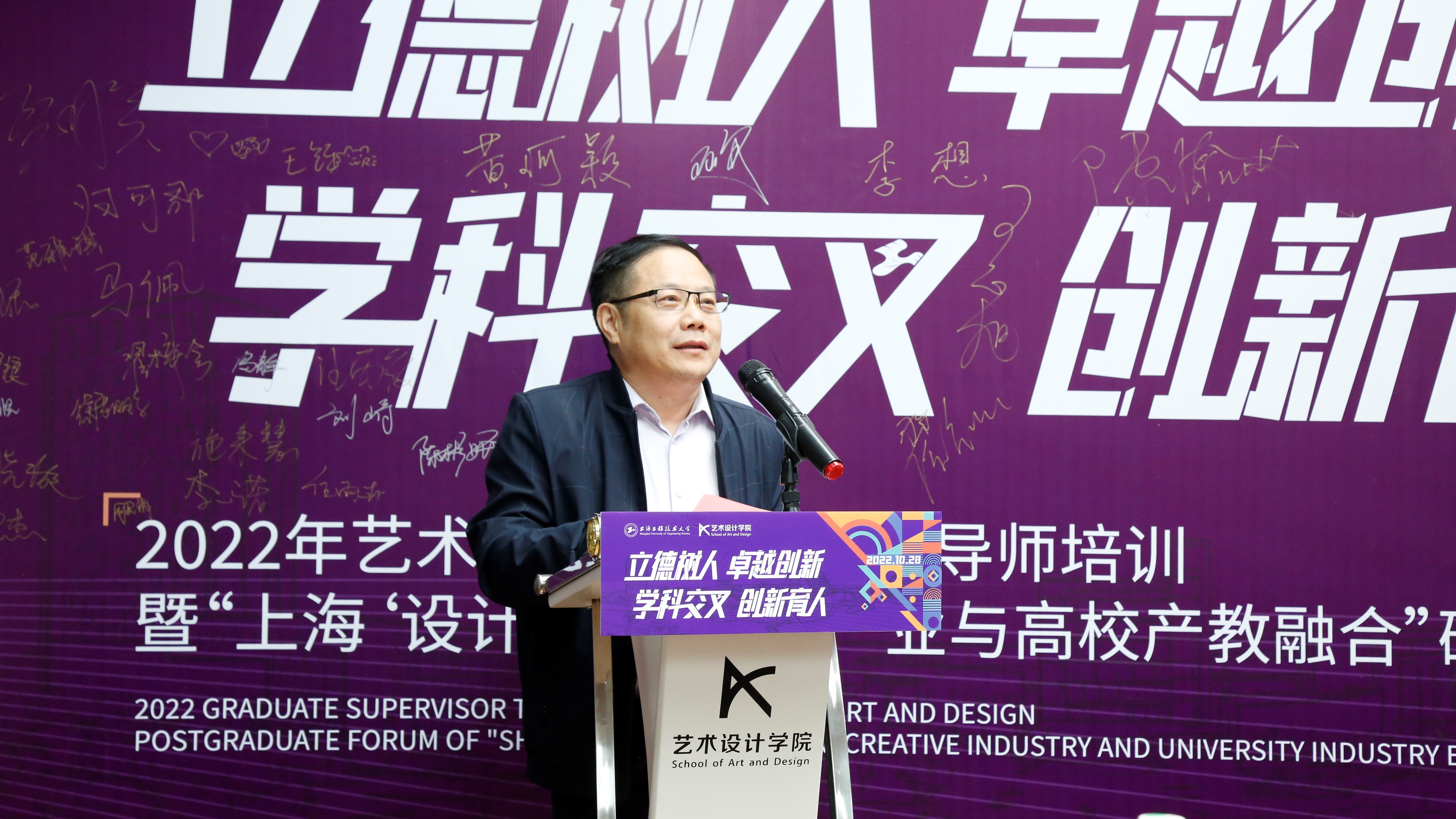 东华大学服装与艺术设计学院教授、博士生导师,上海艺术专业学位研究生教育指导委员会副秘书长刘晓东教授演讲《硕士研究生导师的“言行”思考》,依次从导师规范、研究方向、教学实践、获奖情况等展开了精彩地论述。特别讲述了导师教育理念的转变的三个阶段:从技能增长型转变为知识发展型,从单一教育转变为跨界学习,从信息化转变为智能化。