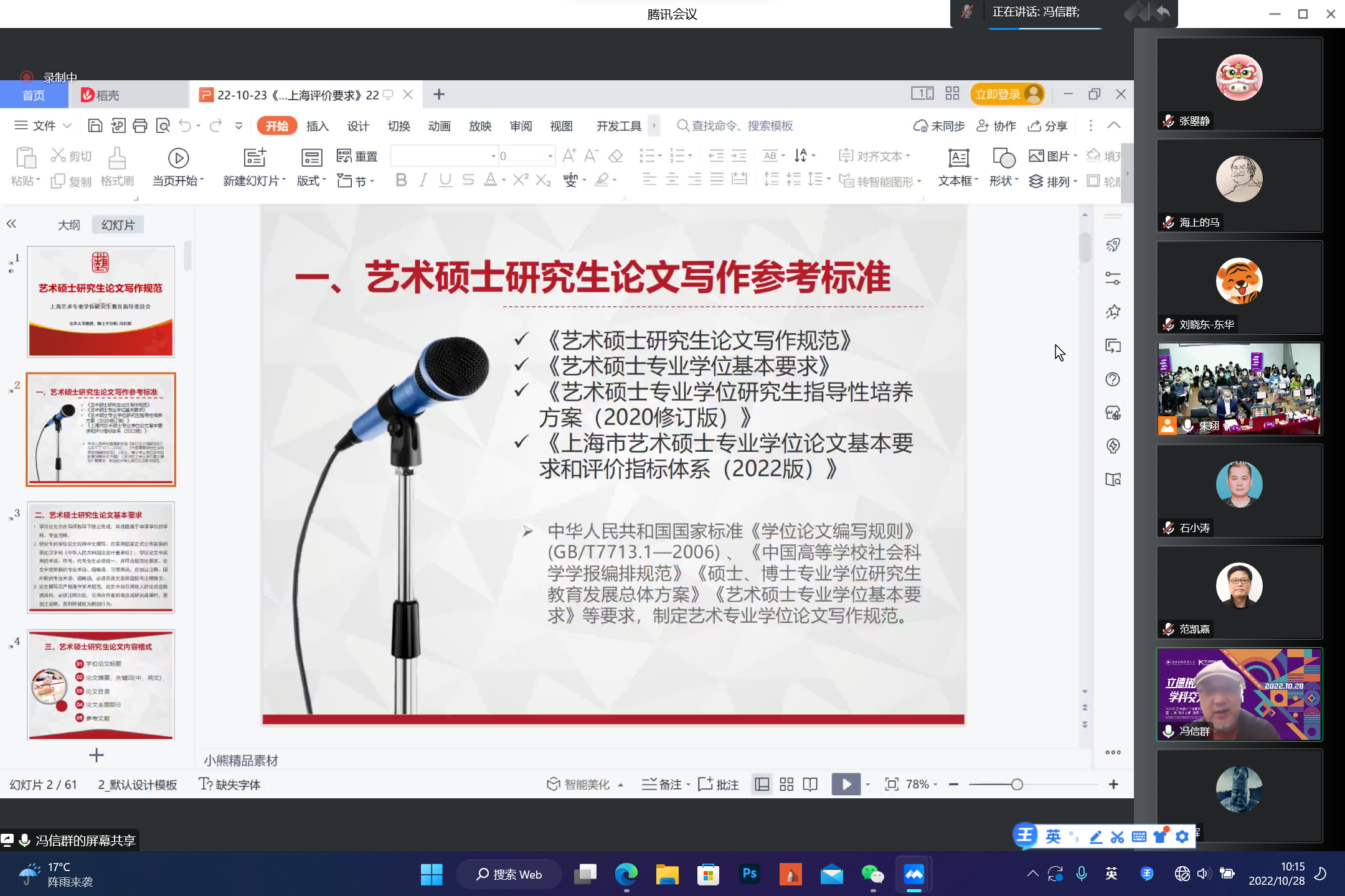 全国艺术专业学位研究生教指委委员、教育部设计学类专业教育指导委员会委员、东华大学教授、博士生导师、 服装与艺术设计学院副院长冯信群教授演讲《艺术专业学位论文基本要求及评价指标体系》,主要从艺术硕士研究生论文写作规范入手,依次从艺术硕士研究生论文写作参考标准、基本要求、内容格式几个方面进行了详实细致地介绍。