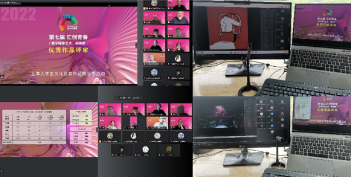 由于受到疫情影响,作品的评审工作也首次在线上进行。工作组删剪、遮挡作品中作者信息,以盲审的方式让评审工作保持公正性。作品由数媒动画类组委会组织、抽签、排序并按序播放,评审组专家打分后当场计分汇总。本次活动于11月上旬在上海工程技术大学开设分展,同时也进行为期一个月的线上云展,通过虚拟展示平台将学生的创新创意才能展现给相关行业与社会大众。
