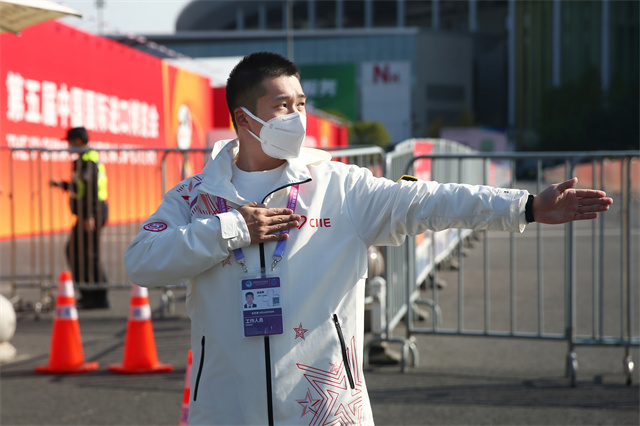 “我为大家提供行李寄存,每日需要在开馆之前就位等待,接待每位有需要的人员,记录信息并为其保存行李,直至闭馆。有时,涉及大件行李,还需要我们合力搬存的同时保证物品不被损坏。”张非凡服务的点位方圆不大,但反复来回一天下来,微信步数也能妥妥上万。迎着晨风出门,披星戴月而归,能成为进博会的一颗“螺丝钉”,他感到十分荣耀。