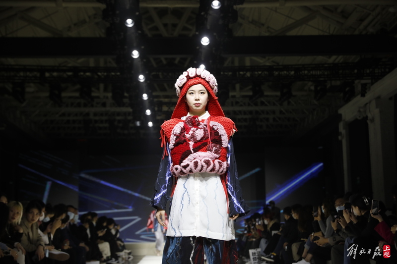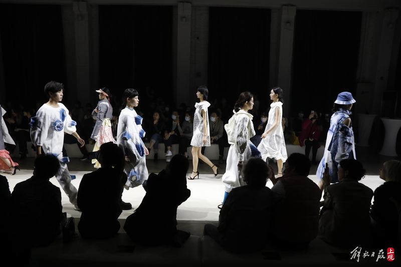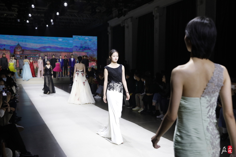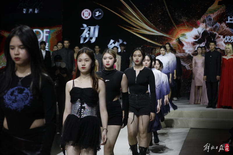 参与走秀表演的多是大一大二学生,他们身着师兄师姐设计的作品,兴奋之余也激励自己前进。