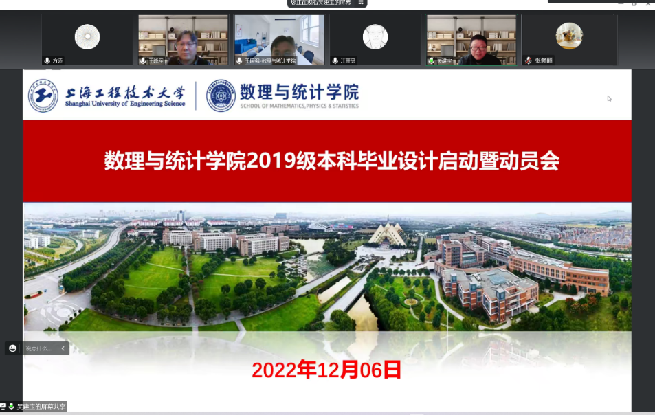 12月6日数理与统计学院通过在线会议的形式召开2019级本科毕业设计启动会暨动员会,学院2023届本科毕业设计(论文)工作拉开序幕。学院院长王国强,统计与数据计算系、光电物理系全体教师参加会议,会议由学院副院长吴建宝主持。