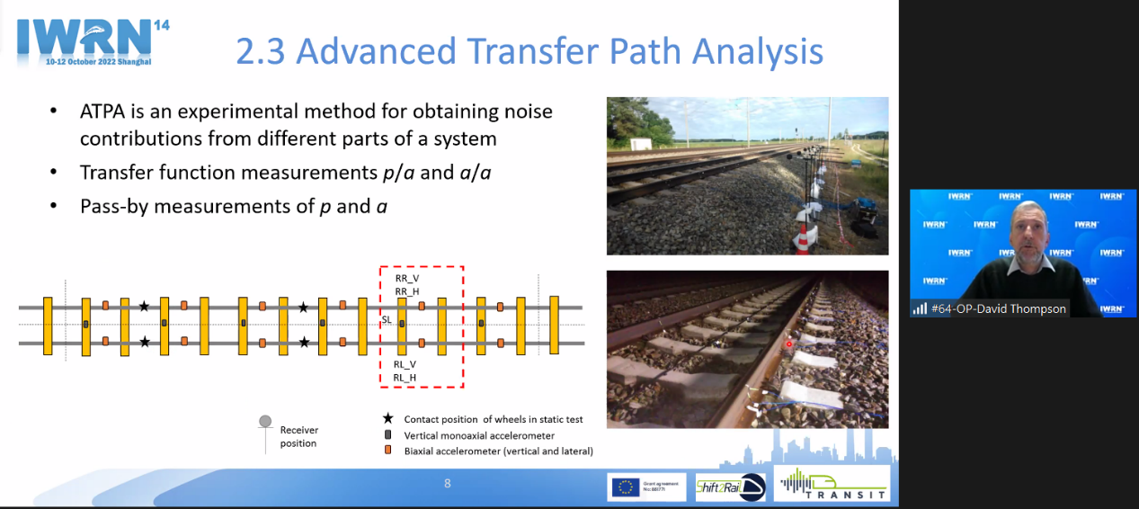 IWRN国际委员、英国南安普敦大学声学与振动研究所David Thompson教授发表了题为《Improved methods for the separation of track and wheel noise components during a train pass-by》的演讲,他提出了从实测轮轨噪声中采用试验技术分离车轮和轨道噪声的改进方法;IWRN国际委员、日本铁道技术研究院Kiyoshi Nagakura教授作了题为《Study on devices to reduce pass-by noise along viaducts with snow-removing openings》的报告,他采用比例模型分别进行了实验室测试和线路测试,分析了多种清除雪障的声辐射特性。