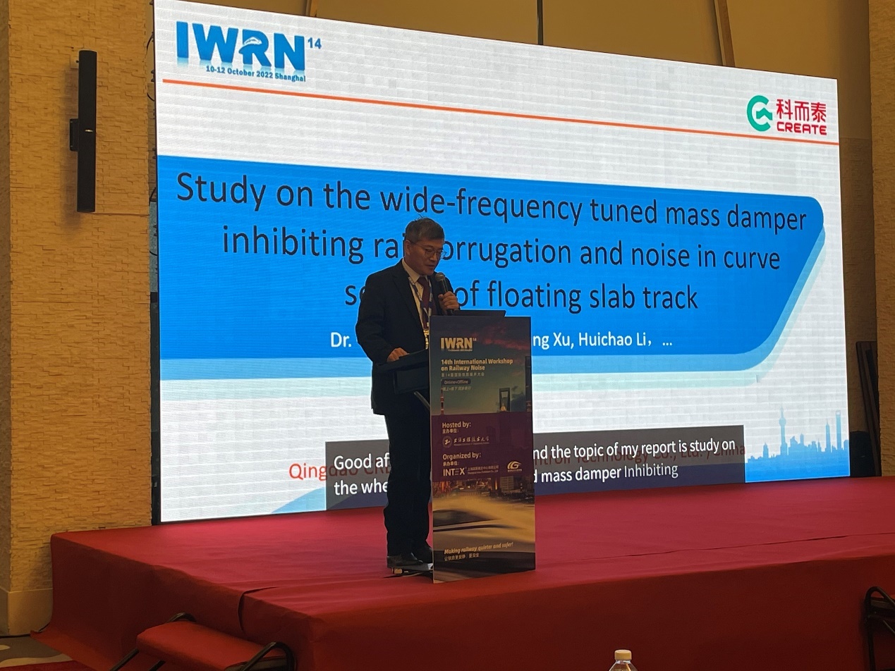 本次大会包括高速铁路和空气动力学噪声、轮轨噪声、减振弹性轨道等11个主题,与会代表以口头报告或海报的形式进行展示与交流。其中,长江学者、同济大学上海地面交通工具风洞中心主任杨志刚教授在《Research advances on aerodynamic noise of high-speed trains》的报告中从预测、机理分析和噪声控制方法等方面综述了高速列车气动噪声的研究进展;国家级人才、青岛科而泰环境控制技术有限公司董事长、隔而固(青岛)振动控制有限公司总经理尹学军教授作了题为《Study on the wide-frequency tuned mass damper inhibiting rail corrugation and noise in curve section of floating slab track》的报告,他指出WTMD的使用能够有效抑制钢轨振动和钢轨波磨的发展,且可以降低轨旁噪声和车内噪声;