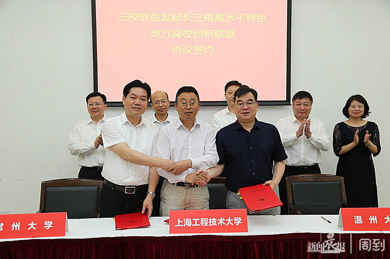 启动仪式上,三校签署了《上海工程技术大学、常州大学、温州大学关于联合发起成立长三角高水平特色地方高校创新联盟的协议》。