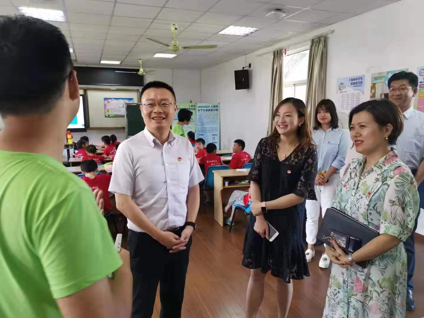 8月2日,市委宣传部副部长、市文明办主任、市志愿者协会会长潘敏,团市委副书记戴冰分别在松江区青年中心及暑托班上师附小办班点看望慰问我校12名学生志愿者,为在酷暑中依旧坚持服务的志愿者们送去了“清凉”。松江区区委宣传部、团区委及我校团委负责人陪同慰问。