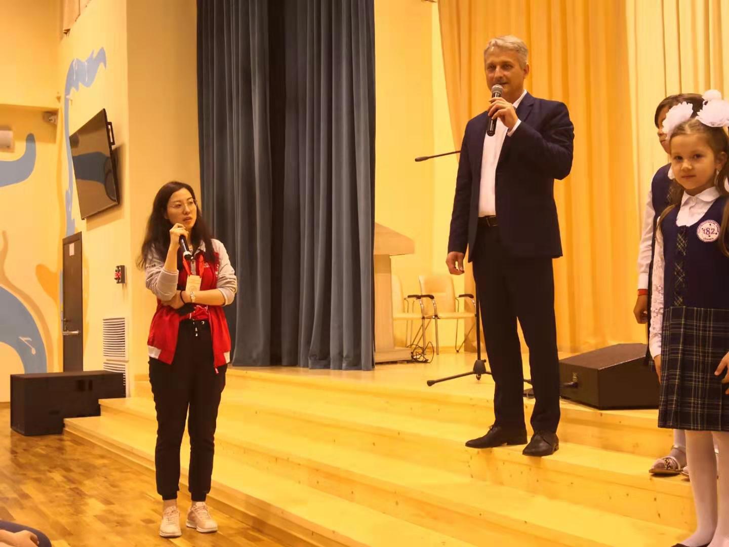 王梦瑶为到场的中国代表团进行翻译