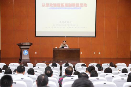 培训还请到了教育部思想政治理论课教学指导委员会副主任委员、我校兼职教授高德毅做了课程思政建设专题报告。报告以“从思政课程拓展到课程思政”为题,结合习近平总书记提出的“全面构建高校思想政治教育课程体系”,解读了全国教育大会精神的“三个根本”,全面阐释了构建思想政治教育课程体系建设的总体思路、战略选择和实现路径。高教授的报告深入浅出、素材丰富、数据详实、案例充分,具有很强的理论性、专业性、指导性,他用自身的教学、工作经历勉励青年教师要守好课堂教学主渠道,努力做学生记得住的好老师。高教授的报告还吸引了各学院党政领导、教师、辅导员前来聆听。