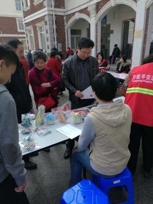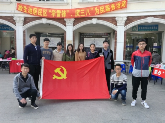 第二组学雷锋团队来到松江区方松街道,与社区党员、社区居民及社会各界志愿者一起参加了放生池居委会承办的“学雷锋”、庆“三八”为民服务活动。十位学生党员分为三个小队,第一队负责爱心“救衣”手工艺品的义卖,耐心地像向社区居民讲解工艺品的制作过程和废物利用的意义;第二队在社区工作室阿姨的指导下制作手工艺品,为爱心义卖注入新的色彩;第三队负责发放“维护妇女权益,关爱女性健康”宣传手册。志愿服务圆满结束,我院学生党员与社区党员在党旗下合影留念,社区居委会工作人员也表达了对我院学生第二党党员的感谢。