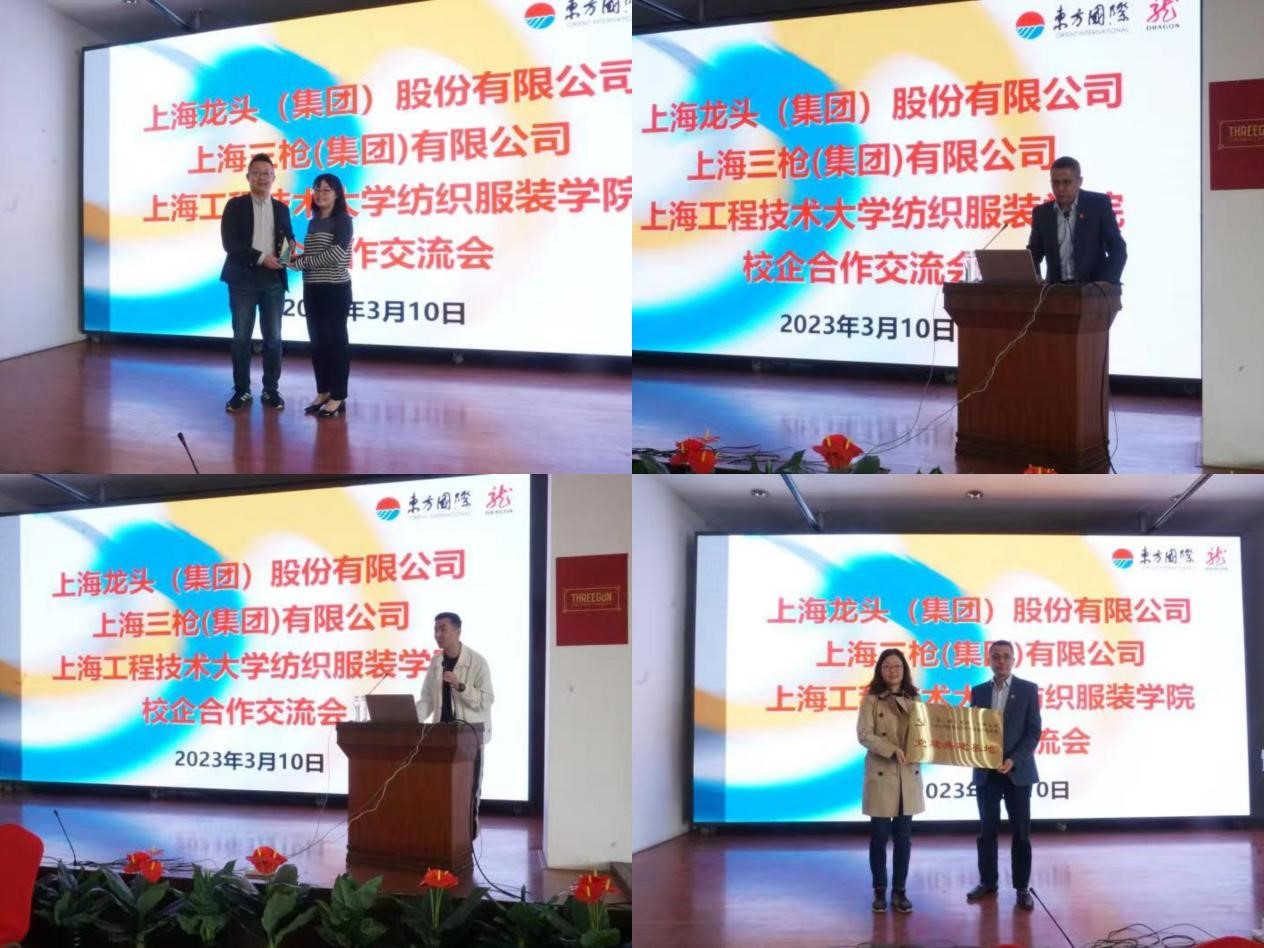 纺织服装学院将与上海龙头(集团)股份有限公司、上海三枪(集团)有限公司本着优势互补、互惠双赢、联建共建、共同发展的原则,建立长期、全面、紧密的校企合作关系,在党建共建、产学合作、就业实习、科学研究与成果转化、人才培养与交流等方面开展全面合作,为毕业生高质量充分就业保驾护航,为学校发展添砖加瓦。