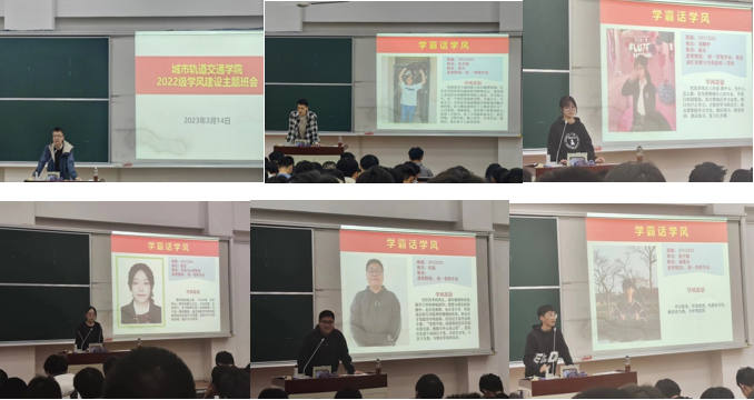 为进一步推进学风建设和树立大学生优良班风学风,3月14日,城市轨道交通学院开展2022级学风建设主题班会暨“学霸话学风”主题分享活动。邀请五位获得校一等奖学金的同学,现场就学风问题交流自己的看法,分享了自己的学习经验和学风寄语。几位同学的分享准备充分、内容丰富,既有对学习的安排与规划,也有对日常生活的耐心讲解。