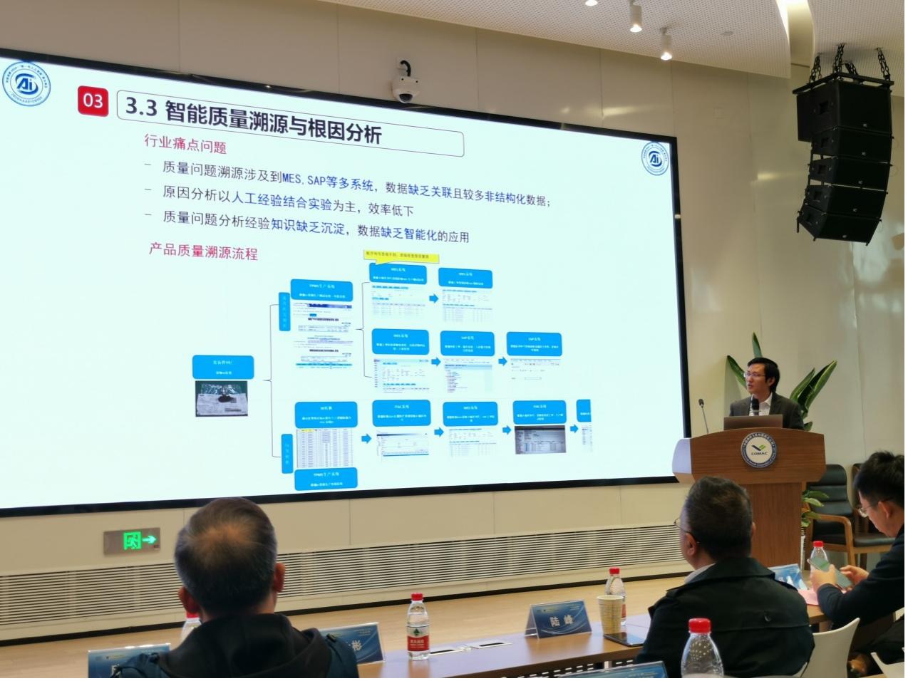 上海工程技术大学人工智能产业研究院院长方志军、副院长杨淑群,电子电气工程学院副院长高永彬分别受中国商飞公司旗下上海飞机制造有限公司、中国商飞上海航空工业(集团)有限公司、中国商飞北京民用飞机技术研究中心三家单位邀请,参与本次研讨会并基于前期合作基础作主题报告。