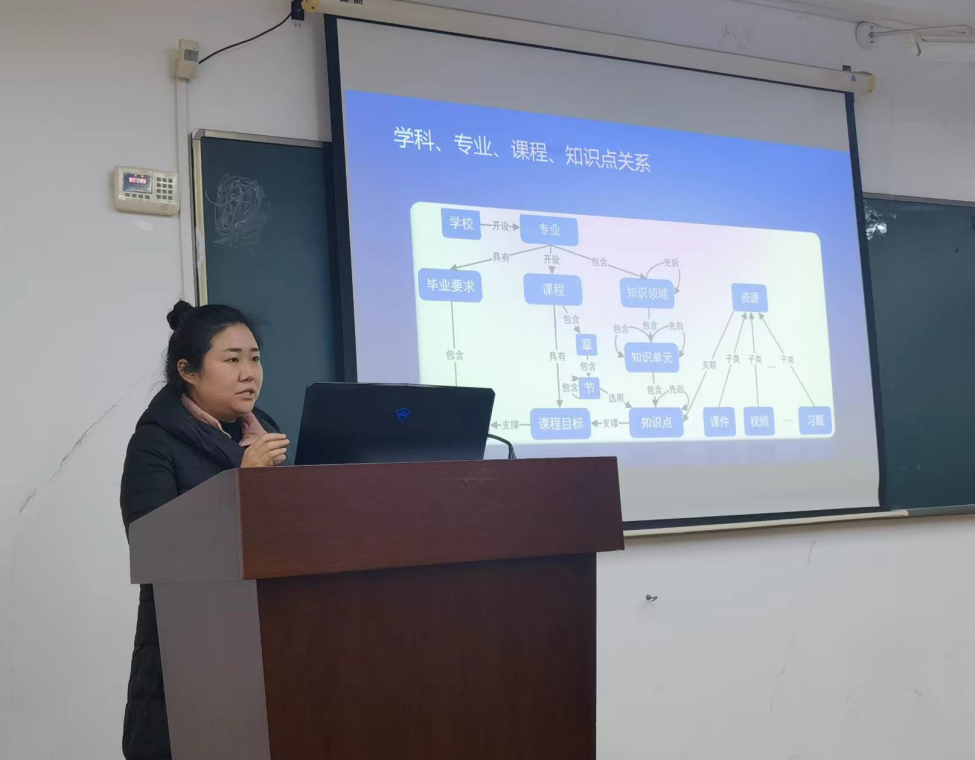 会上,胡子琦老师对虚拟教研室建设背景及政策文件进行了解读,并对虚拟教研室以及知识图谱的概念、知识图谱的应用、知识图谱的构建进行了详细陈述。胡老师以超星泛雅系统平台演示讲解了虚拟教研室、知识图谱的各项功能及操作,包括知识结构中各节点的编辑、学生的知识点统计分析、知识点的整体分析、在线协作、知识挖掘以及知识点关联等。胡老师提出通过知识图谱的构建可以进行精准教学,针对性的制定教学策略,资源智能推送引擎,同时可以将碎片化的资源进行重构、整合,构建学科知识图谱,完善学科、专业、课程、知识点的关系。