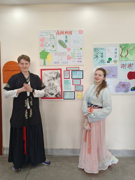 3月27至4月4日,国际教育学院举行了“知华友华”清明节气主题教学活动。十二个班级以多元文化理论为指导,根据学生的汉语水平设计的清明主题教学活动,将清明文化教学融入常规语言教学中,教授清明文化知识,引导学生进行文化对比和交流。各班学生将学习成果制作成主题海报,展示在学生作品展示区,不同班级不同级别的学生得以交流并学习到更多知识。此外,各班师生还品尝了清明美食——青团,全方位体验了清明文化。