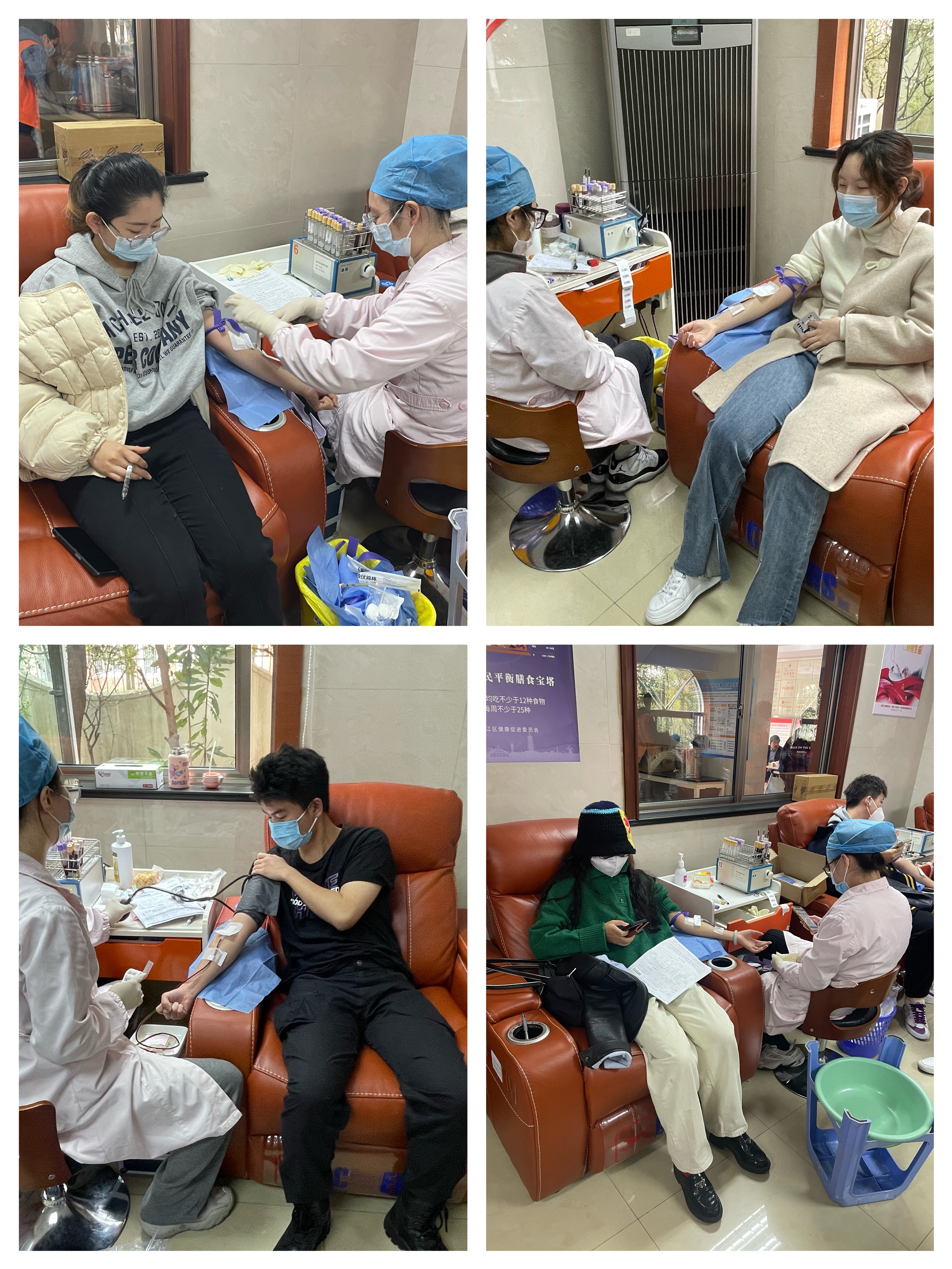 纺织服装学院高度重视无偿献血工作,院党委书记朱君璇、副书记谢志霞来到现场慰问献血学生,对同学们的献血义举表示高度赞扬,同时仔细询问了同学们献血后的身体状况,并叮嘱同学们在献血后注意休息及营养补充。学院辅导员认真做好事前宣传动员,事中组织,给同学们准备了巧克力等物品,全力做好献血保障工作。志愿者彭心铃、杨子藤同学,在做好志愿者本职工作的同时,积极献血。