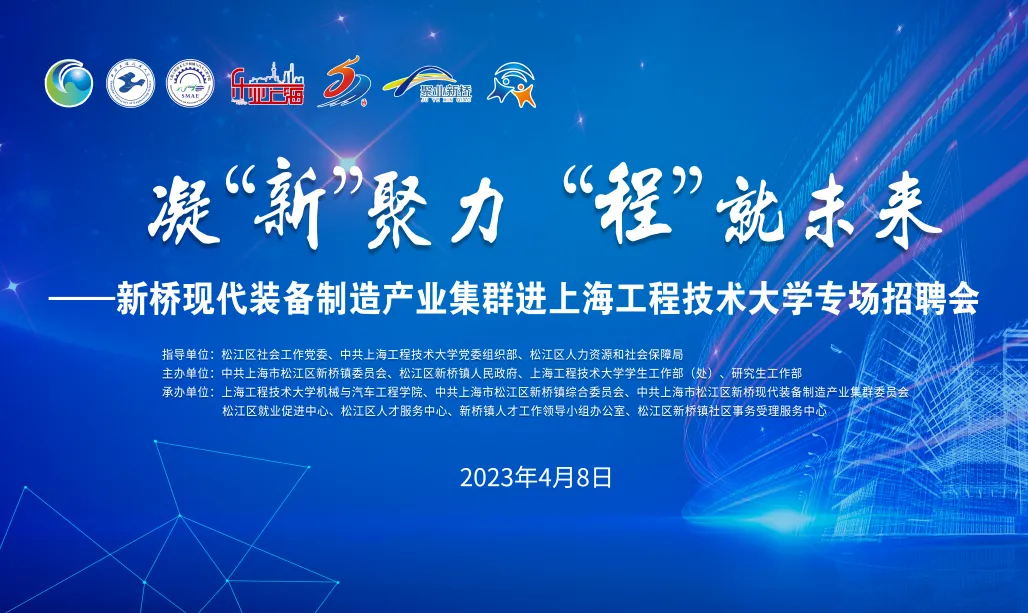 4月8日,机械与汽车工程学院在现代交通工程中心举办了“凝‘新’聚力 ‘程’就未来”为主题的松江区新桥现代装备产业集群专场招聘宣讲会暨校地合作交流座谈会系列活动。新桥镇党委书记黎轶,新桥镇党委副书记、镇长吴超峰,松江区社会工作党委副书记李杰瑜,松江区人社局副局长马守亮,新桥镇党委副书记张娟,新桥镇党委委员、组织部长金艳,新桥镇副镇长彭杰以及现代装备产业集群相关企业领导,我校机械与汽车工程学院党委书记虞蓉,党委副书记、院长方宇,党委组织部副部长熊伟,学生工作部副部长缪琳,机械与汽车工程学院党委副书记王东阳、学院副院长刘新田等出席活动。