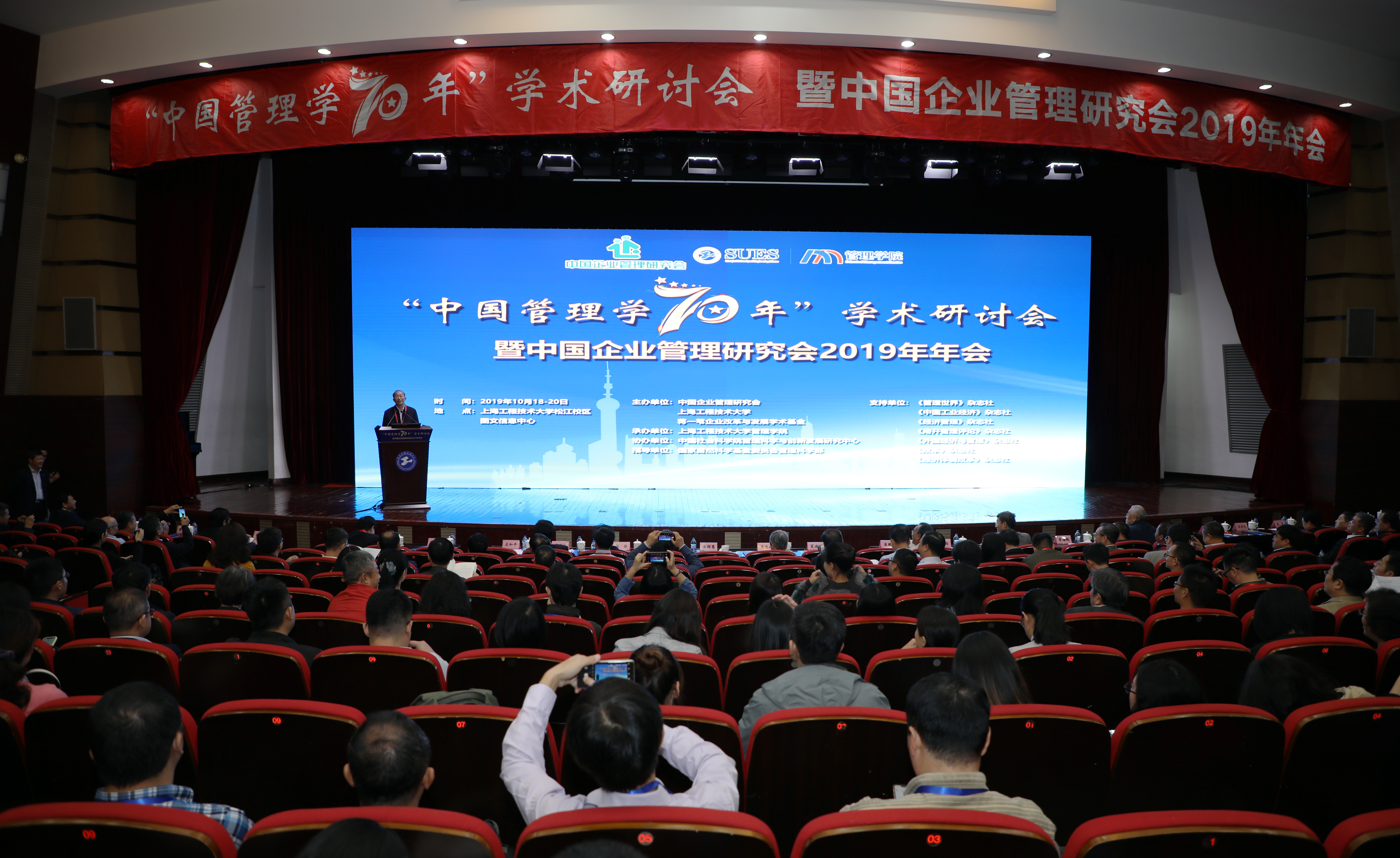 10月19日,“中国管理学七十年”学术研讨会暨中国企业管理研究会2019年年会在我校松江校区图文信息中心召开。来自中国企业管理研究会、中国社会科学院工业经济研究所、复旦大学、南京大学、首都经贸大学等140余家高校、研究机构、企业、杂志社、出版媒体的240余位与会代表及我校近300名师生参加了会议。