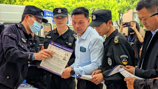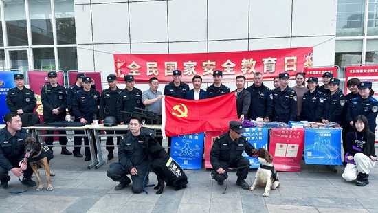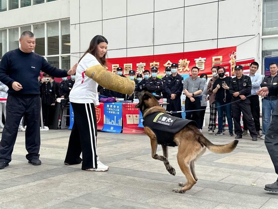 4月14日中午12时在松江校区一食堂广场,保卫部(处)邀请松江区公安分局大学城派出所、治安支队、特警支队、反恐支队进行415国家安全日联合宣教及演练,此次活动是松江区特警支队首次进入我校校园。现场,训导员带领警犬表演了服从、扑咬等各种动作,现场学生热情积极参与到本次活动中。良好的互动使得演练现场气氛热烈,活动取得良好效果。那虎虎生风的防暴犬、缉毒犬,英姿飒爽的特警演练,尤其是各种各样的反暴恐利器的展示,赢得在场全体师生的阵阵热烈掌声。