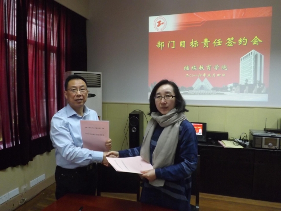 随后,学院党总支书记李军、院长姚黎明分别与学院党支部书记、分管副院长、部门负责人签订了2016年党风廉政建设、部门目标责任书。