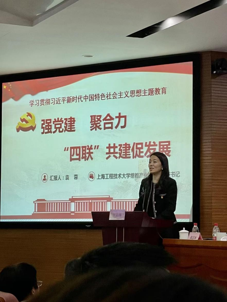 继教产业联合党总支书记袁蓉以学习贯彻习近平新时代中国特色社会主义思想为指导,以《强党建聚合力,四联共建促发展》为主题,就共同推进党建高质量发展,围绕四个方面作了交流发言:一是“三区四联”加强区域化党建融合;二是党建引领,协同提升育人的实效;三是创新驱动,提升“双创”发展活力;四是协同服务,同心守“沪”建特色。2023年学校党委将继续依托党建共建的优势资源,指导二级党组织主动融入长宁区的区域化党建工作中,聚心、聚智、聚力,共建、共治、共享,打造党建共同体,进一步实现协同发展、协同创新、协同共进。