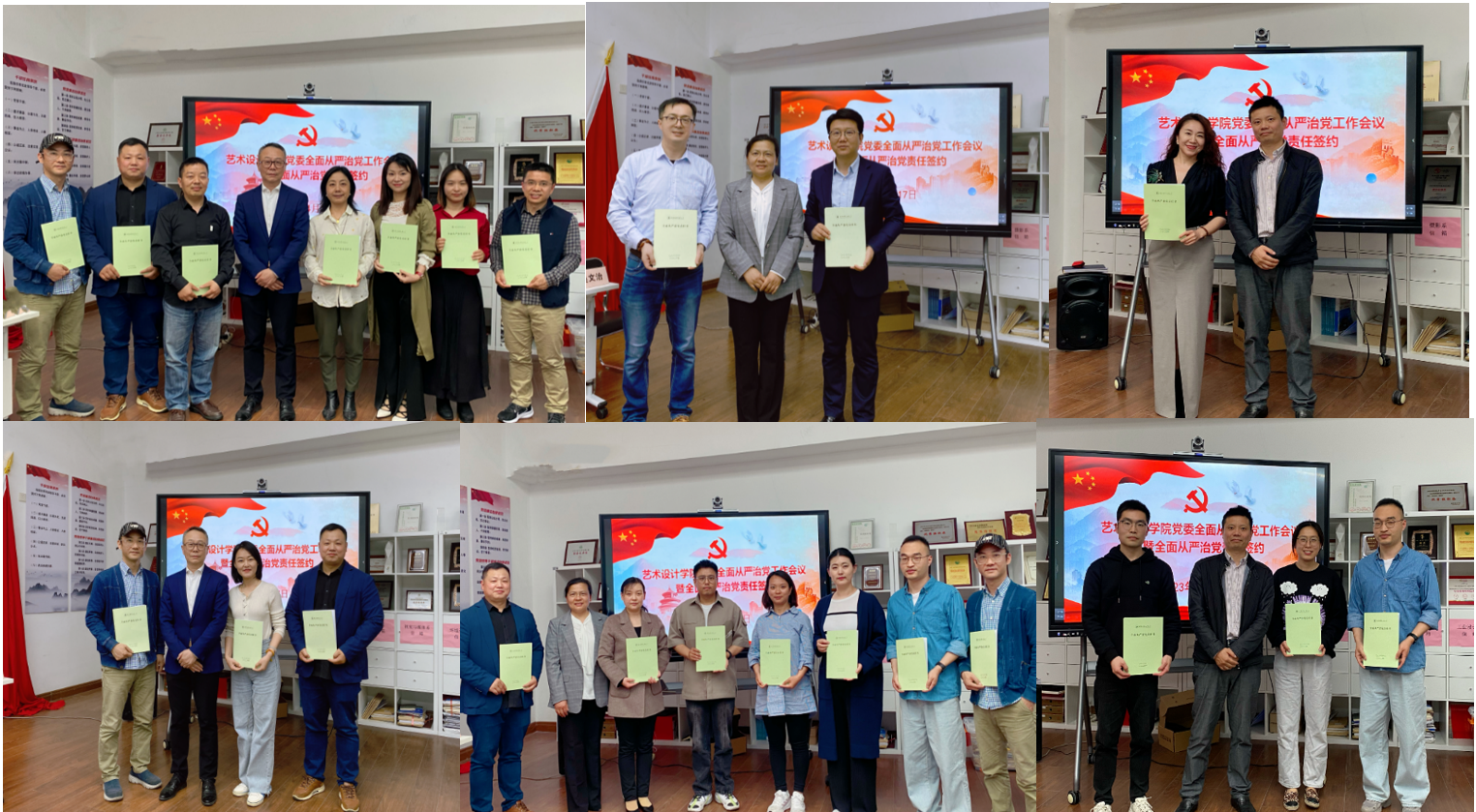 学院党委举行了全面从严治党责任书签约仪式,全体领导班子成员、党支部书记、系室负责人签署了《艺术设计学院党委2023年全面从严治党责任书》。