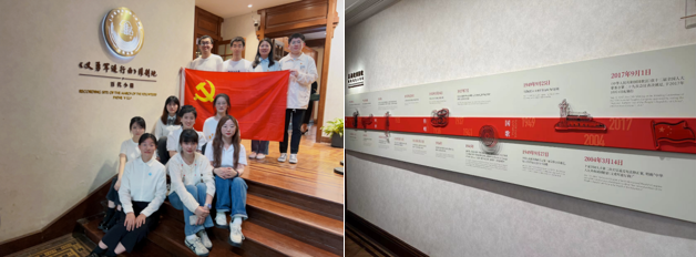 在国歌《义勇军进行曲》的灌制地百代小楼,同学们观看了国歌创作过程的全息影像。田汉、聂耳等人在创作时不畏难、不畏死的大无畏爱国精神、对歌曲细节反复修改的精益求精的工匠精神,与钱学森贯彻的科学家精神一脉相承,相映生辉。在百代小楼中,支部党员们深刻认识到了,一个有科学创新能力的人,不但要有科学知识,还要有文化艺术修养。