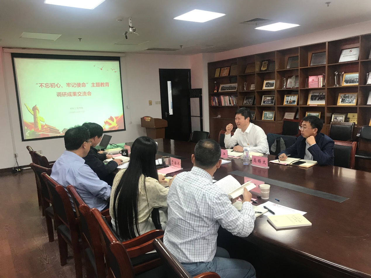 学院党委领导班子坚持问题导向,认真开展调研,就“进一步落实材料学院从严治党主体责任,推动学院高质量发展”、“材料工程学院推进三大发展战略的实现路径和策略”、“二级学院协同育人问题及对策”、“积极推进工程教育专业认证,培养高层次应用型人才”和“高质量学科建设”五个方面的主题进行了汇报和交流。
