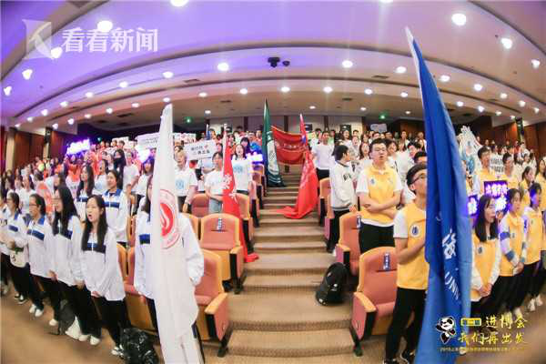 出征仪式上,第二届进博会上海大学生地铁志愿服务口号揭晓——“第二届进博会,我们再出发”。这一响亮的口号在现场引起共鸣,各高校志愿者们一起挥旗并呼应口号,立誓做好本次志愿服务活动,现场气氛振奋人心。