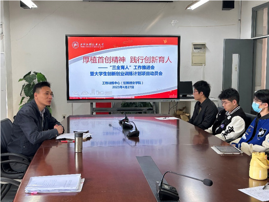 为全面落实立德树人根本任务,贯彻党的二十大报告关于深化创新人才培养的精神与要求,围绕如何依托工程训练教育教学推进工程应用型创新人才培养,工程训练中心(创新创业学院)于4月27日下午组织召开“三全育人”工作会议暨2023年大学生创新训练项目动员会,2023年获批国家级、市级、校级大学生创新训练项目的学生团队负责人、指导教师代表出席,会议由工程训练中心副主任万军主持。