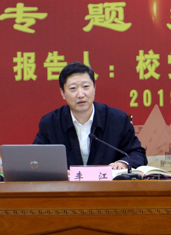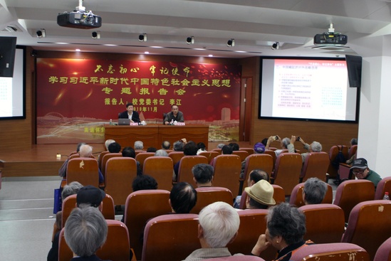 11月1日上午,学校在长宁校区报告厅举行了“不忘初心、牢记使命——学习习近平新时代中国特色社会主义思想”专题报告会,校党委书记李江出席并作专题报告。离休老干部、退休局级老领导、校老教授协会会员、退休党员及教职工共近200人出席报告会。报告会由原校党委副书记、现任校老教授协会会长夏斯云教授主持。
