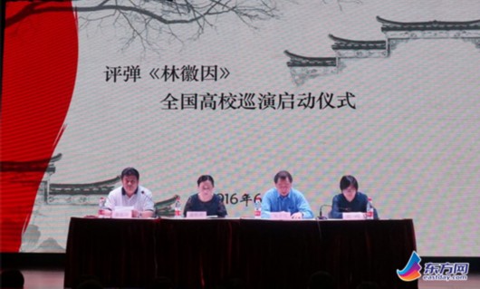 东方网记者王佳燕6月13日报道:评弹《林徽因》全国高校巡演于今天上午在乡音书苑正式启动。《林徽因》是由上海评弹团出品的原创中篇评弹,自2016年3月取得首演成功后,经两个月的调整,将从明天起以上海为起点,开启全国高校巡演。