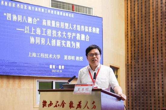 5月20日,由全国地方高校卓越工程教育校企联盟 、CDIO工程教育联盟主办,湖南工程学院承办的“承前启后 再出发——地方高校新工科建设湘潭高峰论坛”在湘潭举行,教育部高等教育司理工处一级调研员侯永峰、湖南省教育厅高教处处长刘奇军,以及来自清华大学、华中科技大学等100余所高校的200多名专家学者参加论坛。我校夏春明副校长应邀在大会上作了题为《“四协同八融合”高质量应用型人才培养体系构建与模式创新》的主题报告。教务处处长饶品华、副处长金晓怡、副处长唐永升、工程教育发展研究中心副主任王迪,以及教务处相关老师参加会议。