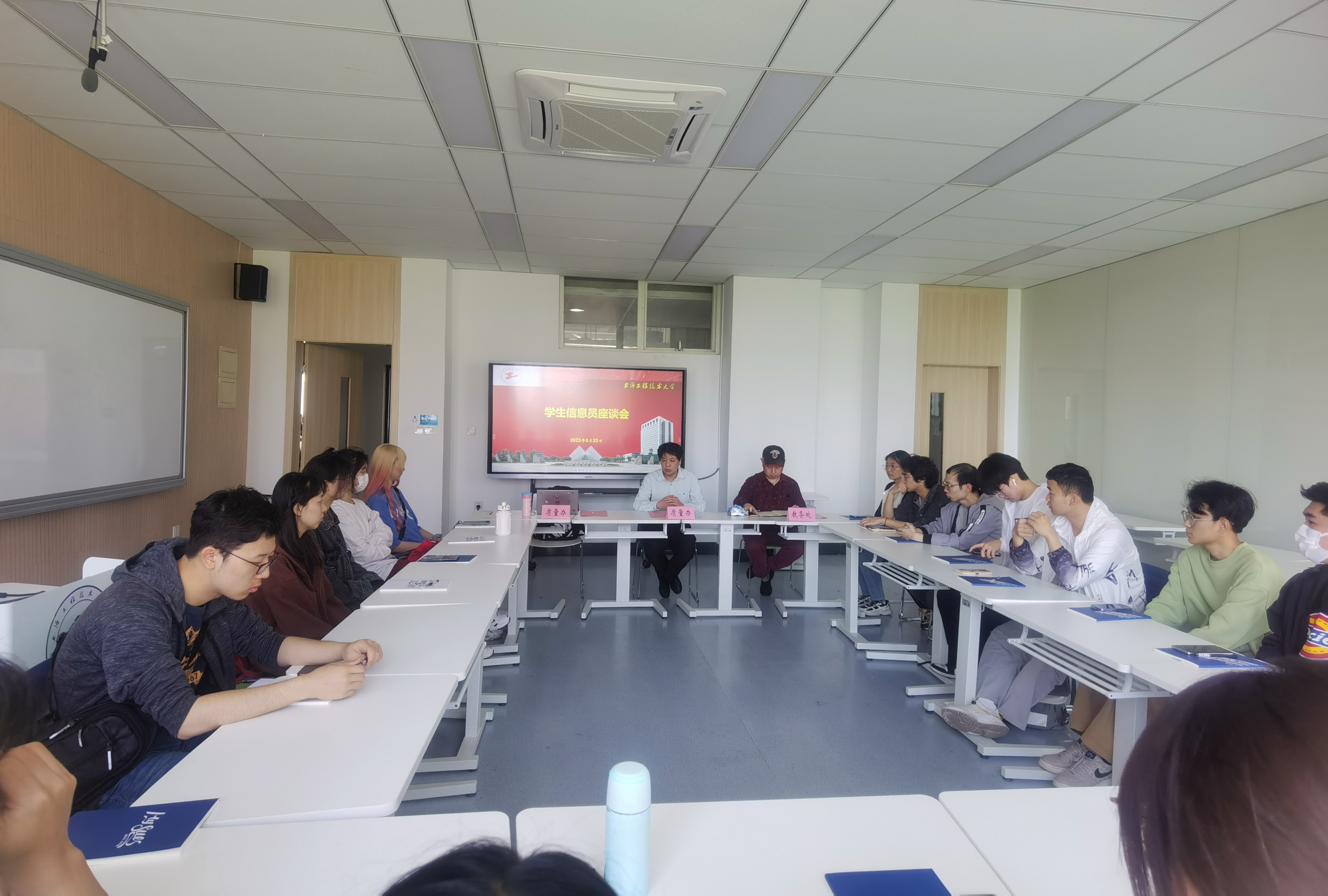 5月23日下午,学生信息员座谈会在教学楼C407召开,教务处、质量管理办公室相关人员、各学院学生信息员代表出席会议。会议由质量管理办公室副主任姚红光主持。