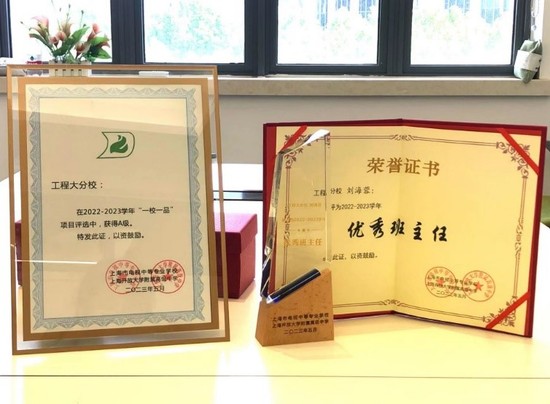 在近日上海市电视中等专业学校、上海开放大学附属高级中学2022-2023学年的“一校一品”项目评选中,继续教育学院申报的“以多语种教学引领学生综合素质发展”项目,荣获A级。刘海蓉老师荣获优秀班主任称号。