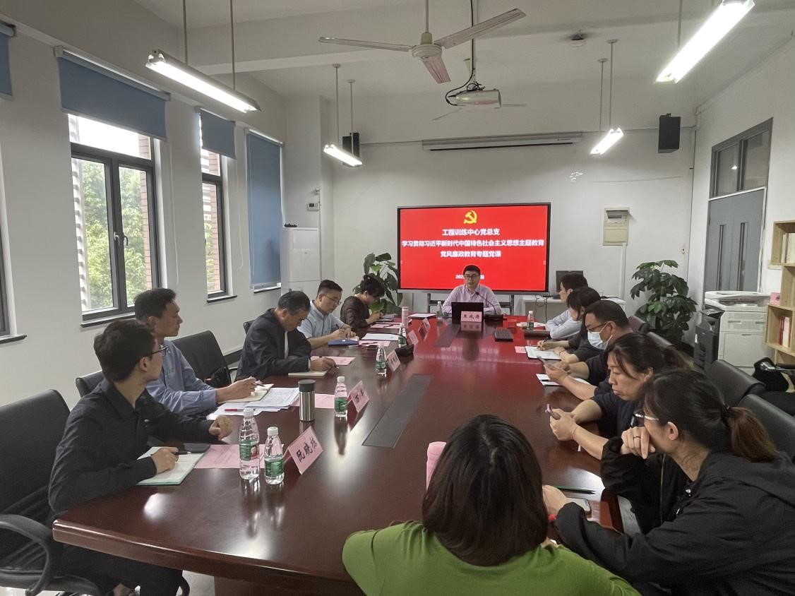 5月18日,工程训练中心党总支在实训楼1438会议室专题学习《论党的自我革命》,中心领导班子成员、全体党员、教职员工出席会议,学校主题教育联络小组组长许传宏、联络员阮晓栋列席会议。会议由党总支书记王成涛主持。