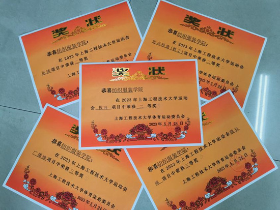 赛场上,长跑、短跑、立定跳远、拔河、跳长绳、跳短绳等项目都踊跃着纺织服装学院师生的矫健身影,一项项精彩的运动场景,使在场的观众热血沸腾,欢呼呐喊。经过一天激烈的角逐,纺织服装学院教师团队在足球项目、定点投篮、拔河比赛等项目中荣获了二等奖,在教工广播操、集体跳长绳项目中获得三等奖,学院教工团体荣获总分全校并列第二的优异成绩。纺织服装学院运动健儿势如破竹,在男子100米、教工跳远比赛中也都获得一等奖的好成绩。