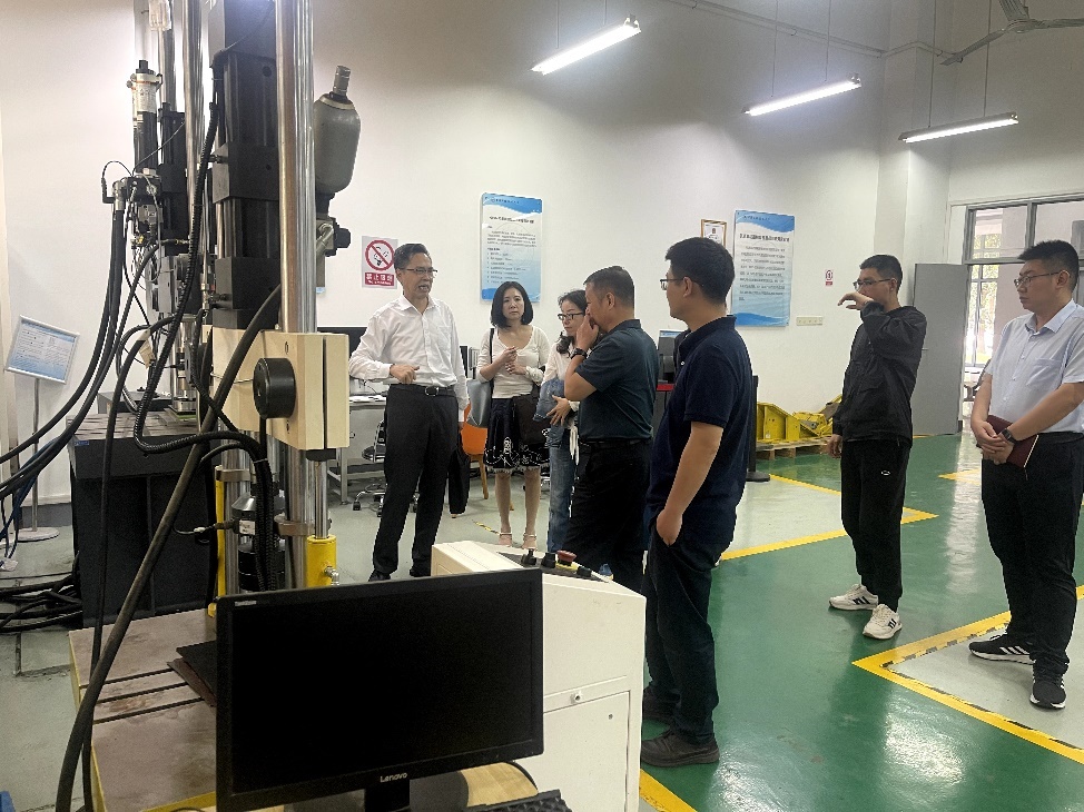 会前,广州地铁集团有限公司专家及学院党政领导一同参观轨道滚动接触摩擦磨损和疲劳实验室、轮轨/弓网磨耗演化实验室、轨道车辆虚拟仿真实验室以及轨道交通运营安全检测与评估服务中心。