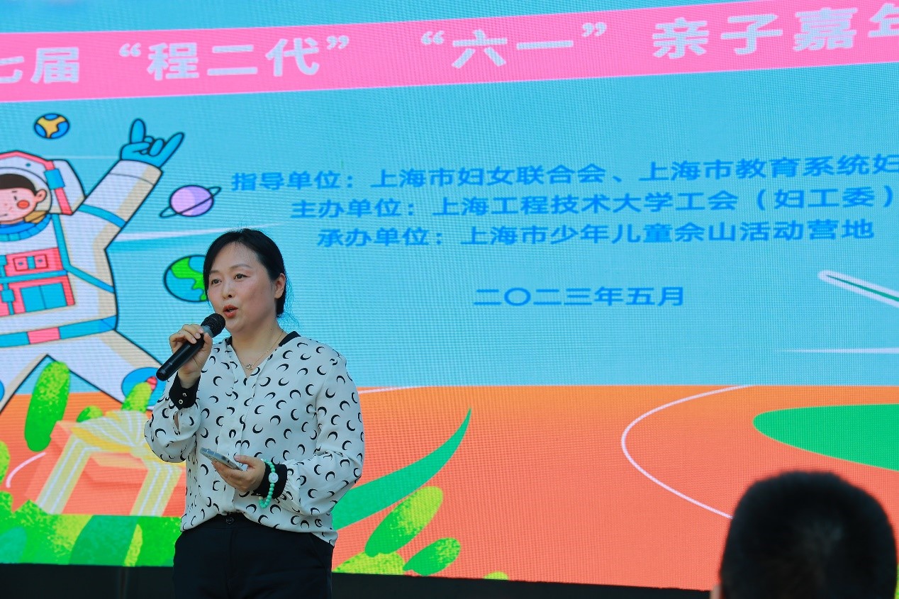 校工会常务副主席、妇工委常务副主任李霞代表学校工会、学校妇工委向参加亲子嘉年华活动的孩子们表示欢迎并致以节日祝福。希望通过主题活动,点燃“程二代”心中的爱国主义情怀,从小树立科技强国梦想,长大报效祖国,成就精彩人生。