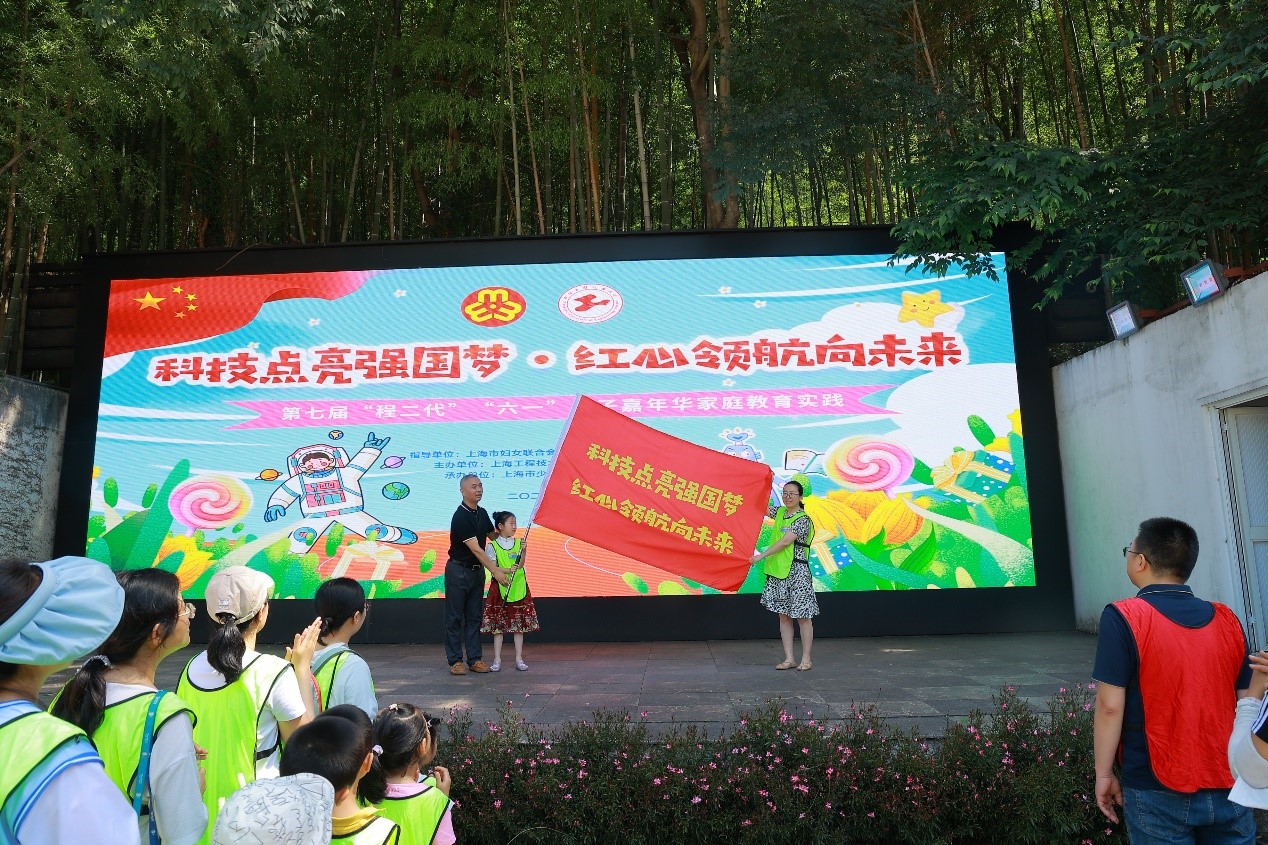佘山营地副主任顾宏权向“程二代”家庭代表授旗,正式开启本次活动。